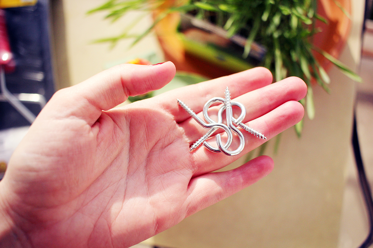 On perce dans le plafond afin de placer des petites chevilles de 6 qui vont accueillir des crochets pour nos suspensions.