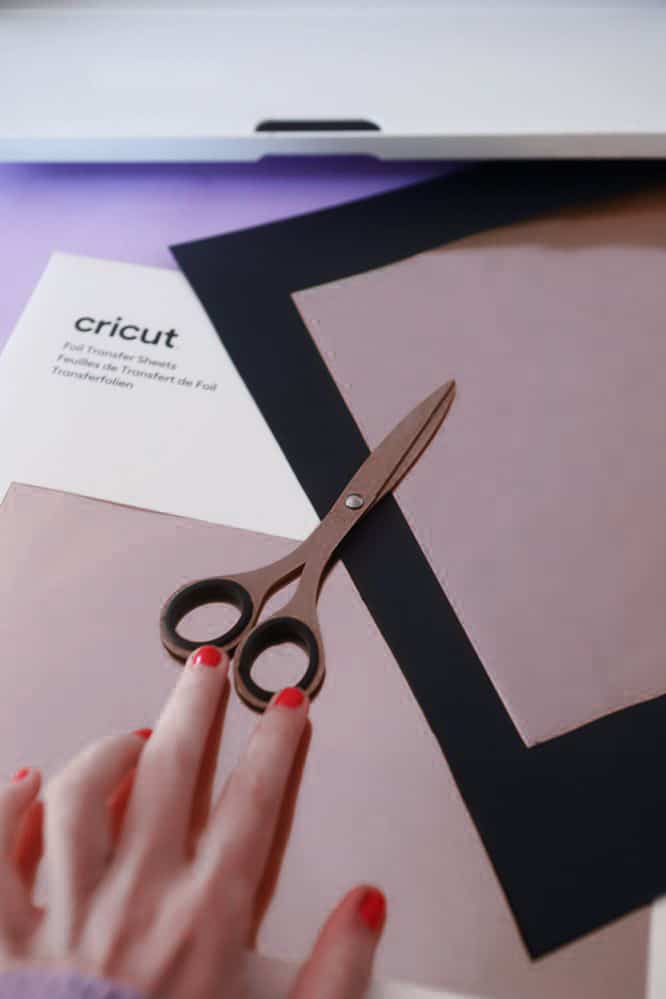 – Placez votre papier noir et le Foil collé dessus sur le tapis de découpe, n’oubliez pas de bien presser le papier pour qu’il adhère lors de la gravure.