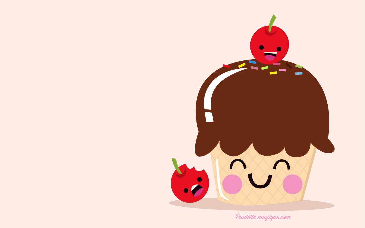 Aujourd’hui j’avais envie de faire une petite illustration, un truc fun pour égayer mon fond d’écran. Comme Alice me harcèle pour avoir des glaces en ce moment et que mon tout dernier tatouage est une glace à l’eau, je me suis amusée à faire un petit cornet au chocolat qui dégouline. Pour qu’il y ai un peu de couleur j’ai rajouté deux petites cerises en train de se faire croquer le cucul ^__^
