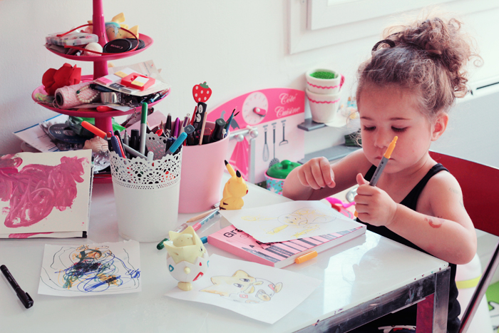 Alice aime toujours autant dessiner, elle fait un léger blocage sur Pikachu, je dessine et elle rempli ^^