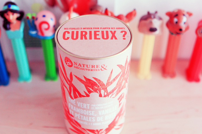 J’ai testé un nouveau thé offert par Nature et Découverte, il est au thé vert, framboise, vanille et pétales de rose. Moi qui commence à boire et à apprécier le thé je le trouve un peu fort pour moi, mais je me le garde pour me réveiller quand je veux alterner avec le café ^^.