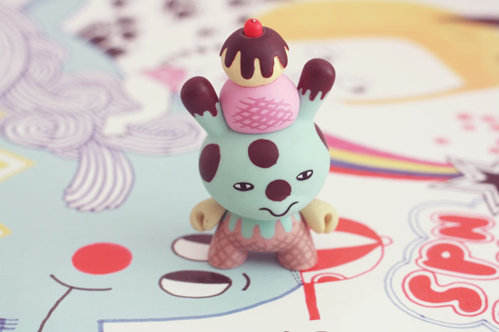 Chez moi j’ai quelques modèles de Dunny créés par la marque Kidrobot, certains sont des souvenirs de mes vacances à New York, d’autres viennent de Bordeaux, de Montpellier, en fait dès que je vais quelque part en vacances j’essaye d’en ramener (bon ok Montpellier c’est pas loin de chez moi ça compte pas comme des vacances, mais j’ai pas pu résister).
