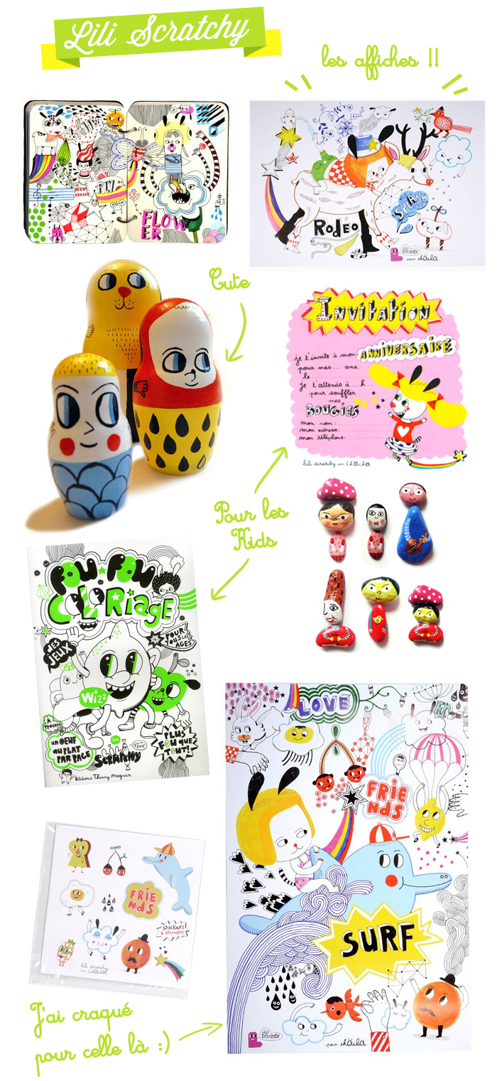 On continue avec la rubrique du samedi sur les créateurs magiques, aujourd’hui on part à la découverte de la géniale Lili Scratchy ! J’adore son trait enfantin, ses couleurs toujours punchy qui mettent du pep’s dans la déco.