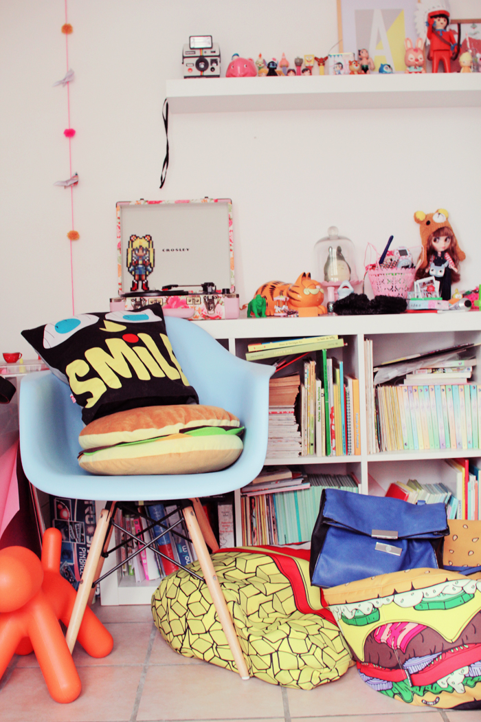 Alice porte une robe Zara, mes poufs hamburger et frites sont trouvables ici, mes Minnetonka ici et la glace ici ♥