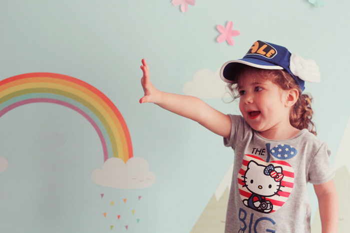 je viens de decouvrir votre blog et j’adooore :) je voulais savoir 2 choses : ou puis je trouver la casquette de votre fille et j’ai craqué pour l’arc en ciel sur le mur… merci ;)