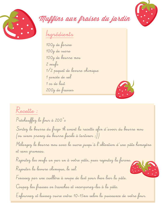 12 juin 2014merci pour la recette, je suis toujours à la recherche d’une bonne base cupcake muffin, et nous avons nous aussi pléthore de fraises, et de framboises, donc à tester très vite!!
